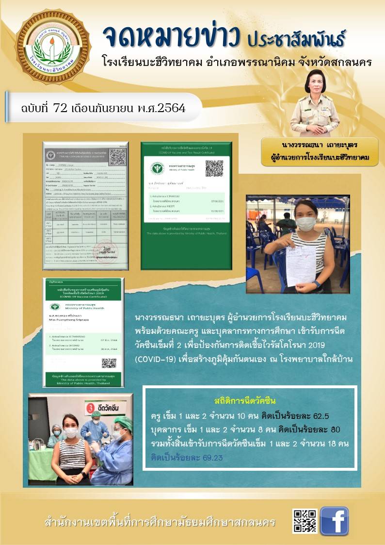 ฉบับที่ 72 ครูและบุคลากรฉีดวัคซีนป้องกันโรคโควิด19