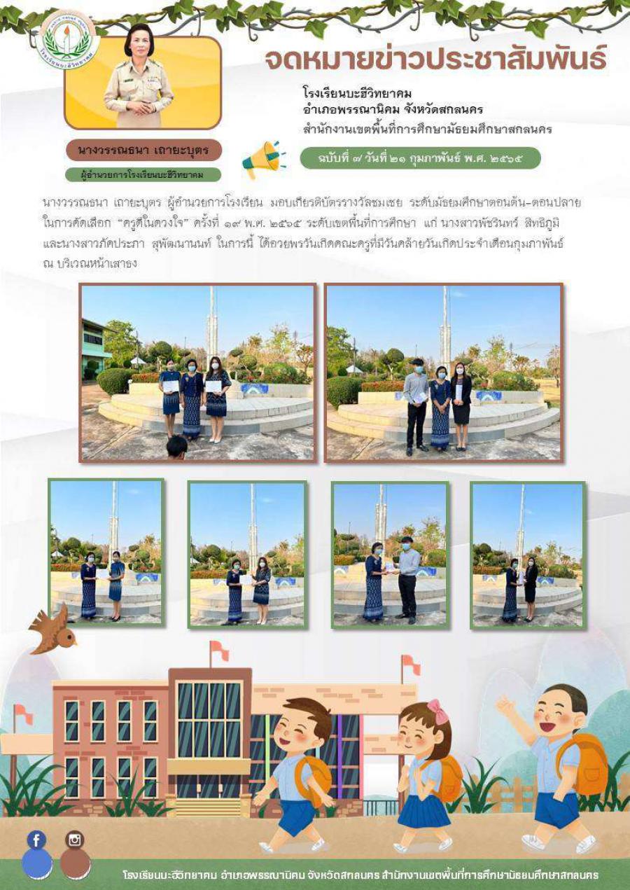 ฉบับที่ 7/2565 มอบเกียรติบัตรครูดีในดวงใจ และอวยพรวันเกิดบุคลากรในเดือนกุมภาพันธ์