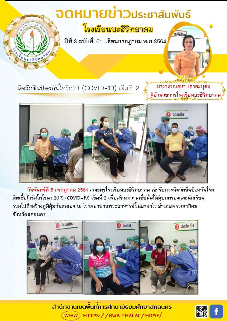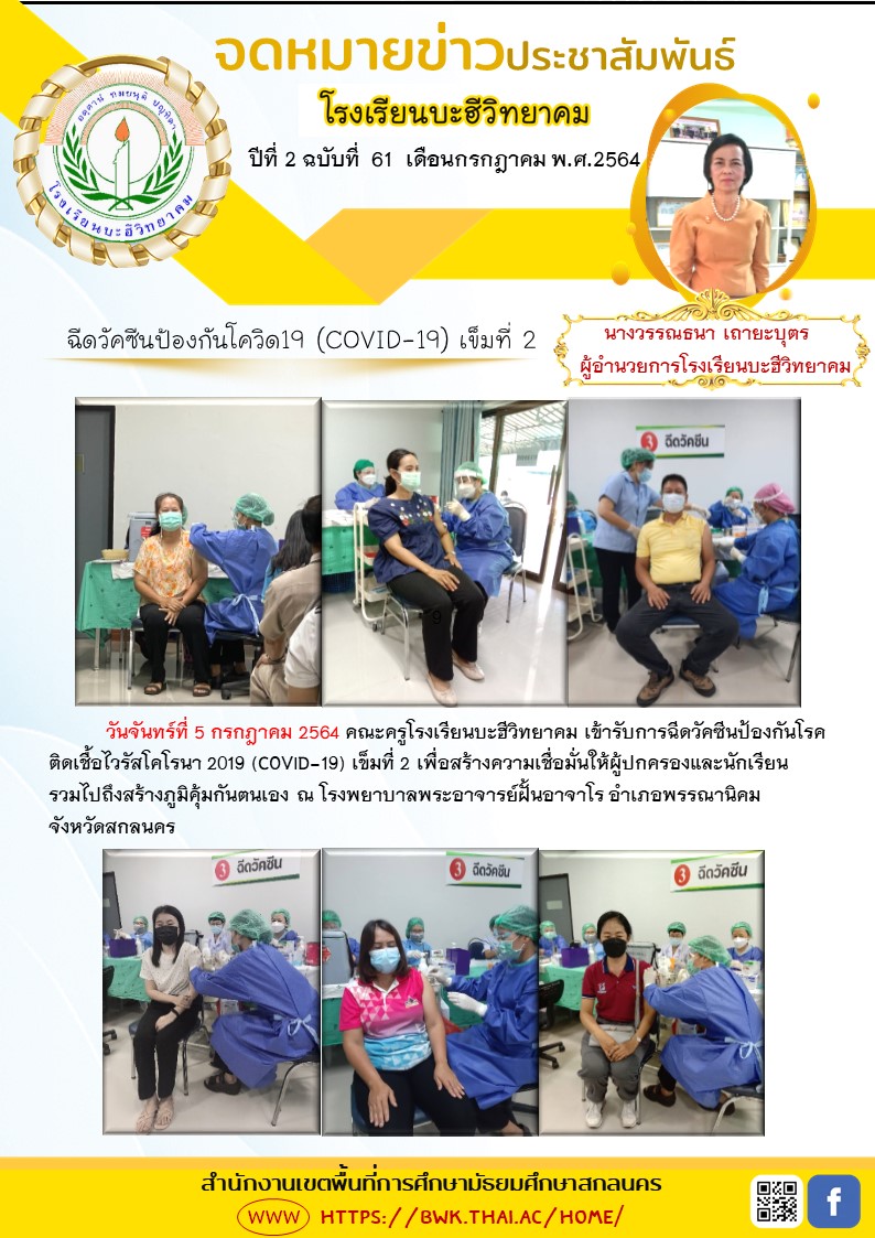 ครูและบุคลากรทางการศึกษาฉีดวัคซีนป้องกัน covid-19 เข็มที่ 2