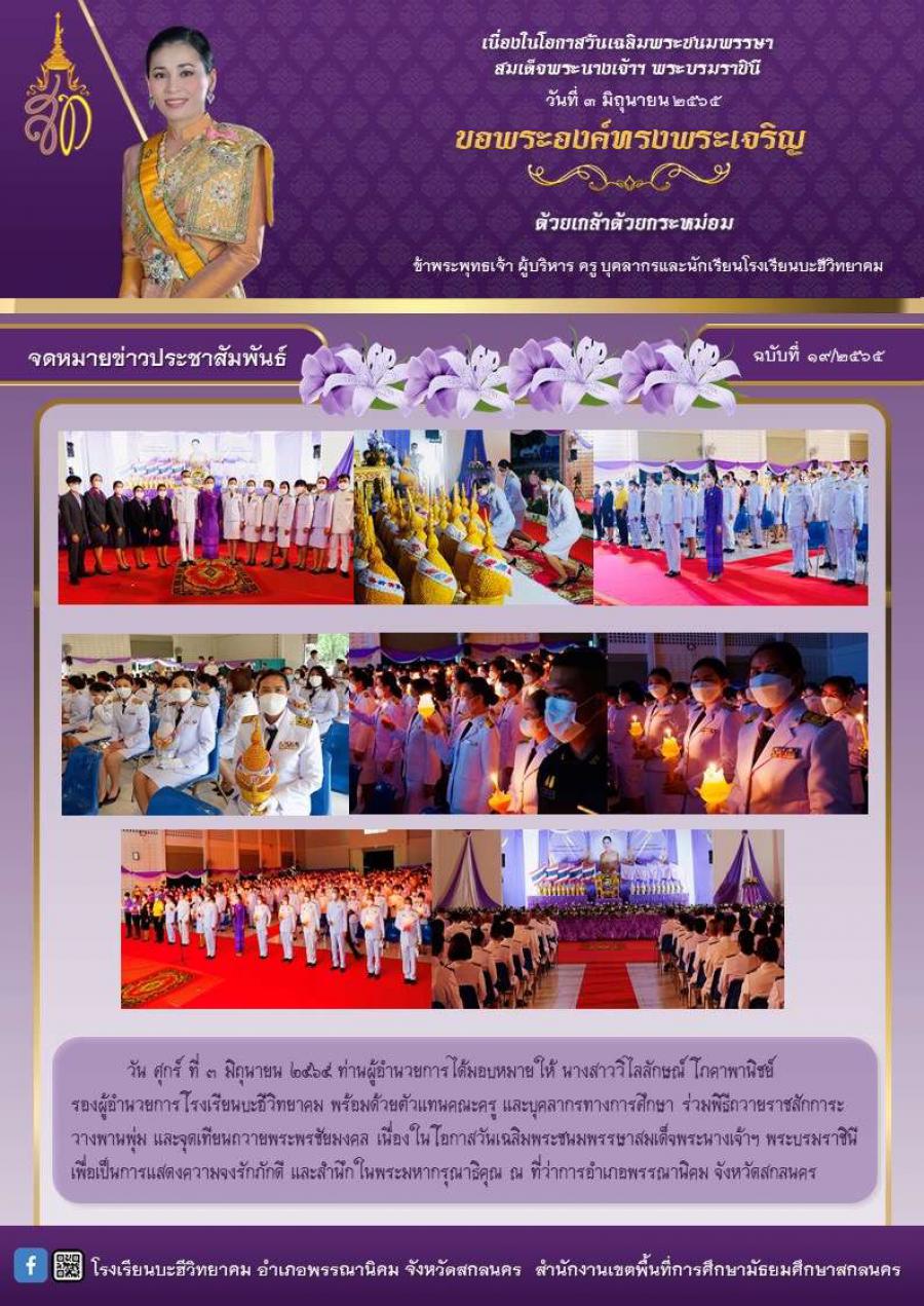 ฉบับที่ 19/2565 ร่วมกิจกรรมจุดเทียนถวายพระพรชัยมงคลสมเด็จพระนางเจ้าฯ พระบรมราชินี